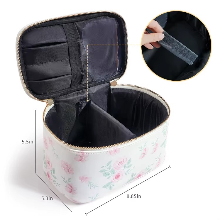 Эта высококачественная многофункциональная сумка для хранения создана специально для женщин. Он имеет композитную структуру: мягкий мешок с цветочным узором + твердая подкладка. Он подходит для различных случаев, например, для хранения косметики и фотоаппаратов, и решает проблемы традиционных косметичек, которые легко пачкаются и которые трудно классифицировать.