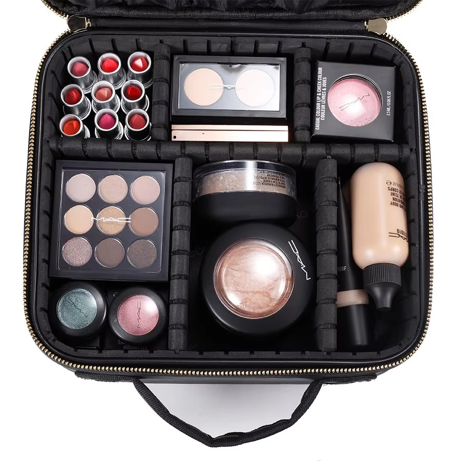 Профессиональный многослойный дизайн: несколько внутренних отделений + отдельный карман для кисточек, в основном отделении можно хранить крупные косметические средства, такие как пудра и палетки теней для век, в боковых карманах можно быстро достать помаду и карандаши для бровей, а в скрытом кармане внизу можно хранить жидкую тональную основу или влажные салфетки.